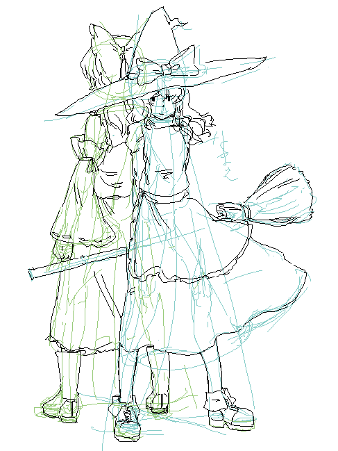 左のはいつもよりちょっと頭身高めを目指して描きました。